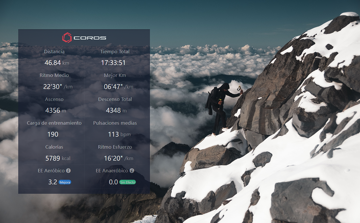 A través de cada cima y cada decisión a lo largo de la ruta, su reloj COROS capturó todos los datos. Capturó la historia del esfuerzo y la resistencia, ayudándole a moverse con precisión y a documentar cada momento del camino.