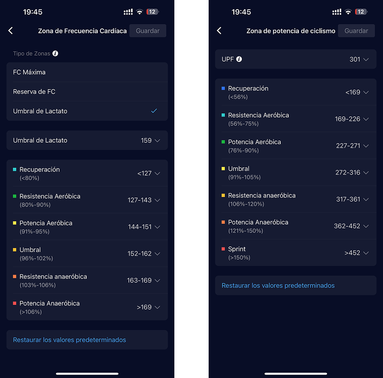 Zonas de FC umbral y Zonas de potencia desde la App COROS