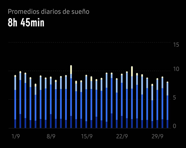 - Revisa tu tiempo total medio de sueño mensual y evalúa si estás durmiendo lo suficiente.