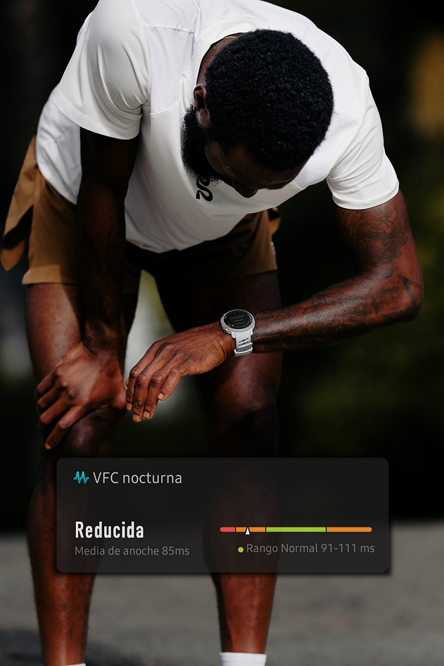 Por lo general, lo normal para ti (verde) es bueno. Una mayor estabilidad de la VFC (menos variación de un día a otro) suele reflejar una buena tolerancia a la carga de entrenamiento y un mayor nivel de forma física. Es posible que observes tendencias a largo plazo y aumentos en tu VFC con buenos hábitos, como un sueño suficiente y constante, un menor estrés general y una mejor forma física y composición corporal.